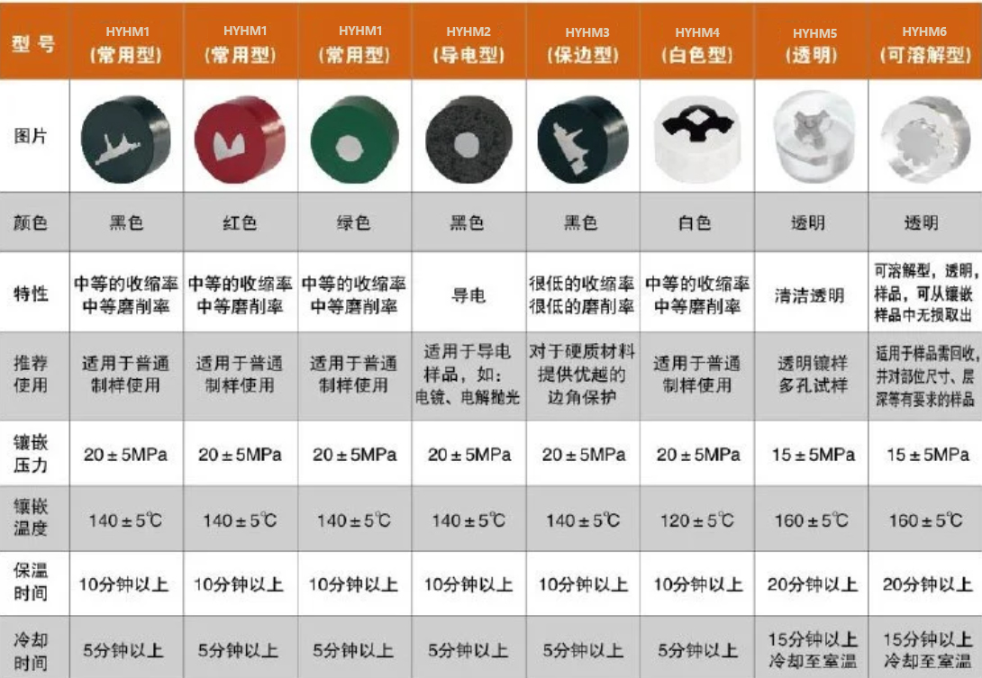 樹(shù)脂采用常規(guī)增強(qiáng)填料,流變性好,硬度適中,也相對(duì)比較經(jīng)濟(jì),也是最為常用的熱鑲嵌樹(shù)脂。對(duì)于硬度低于HRC35的材料比較合適。