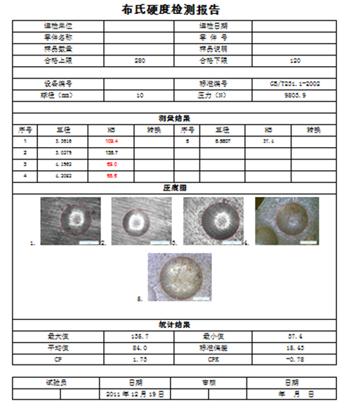 2)符合德國(guó)工業(yè)標(biāo)準(zhǔn)DIN1605自動(dòng)測(cè)量測(cè)試樣品壓痕和標(biāo)準(zhǔn)塊壓痕并計(jì)算捶擊式布氏硬度值HB2;